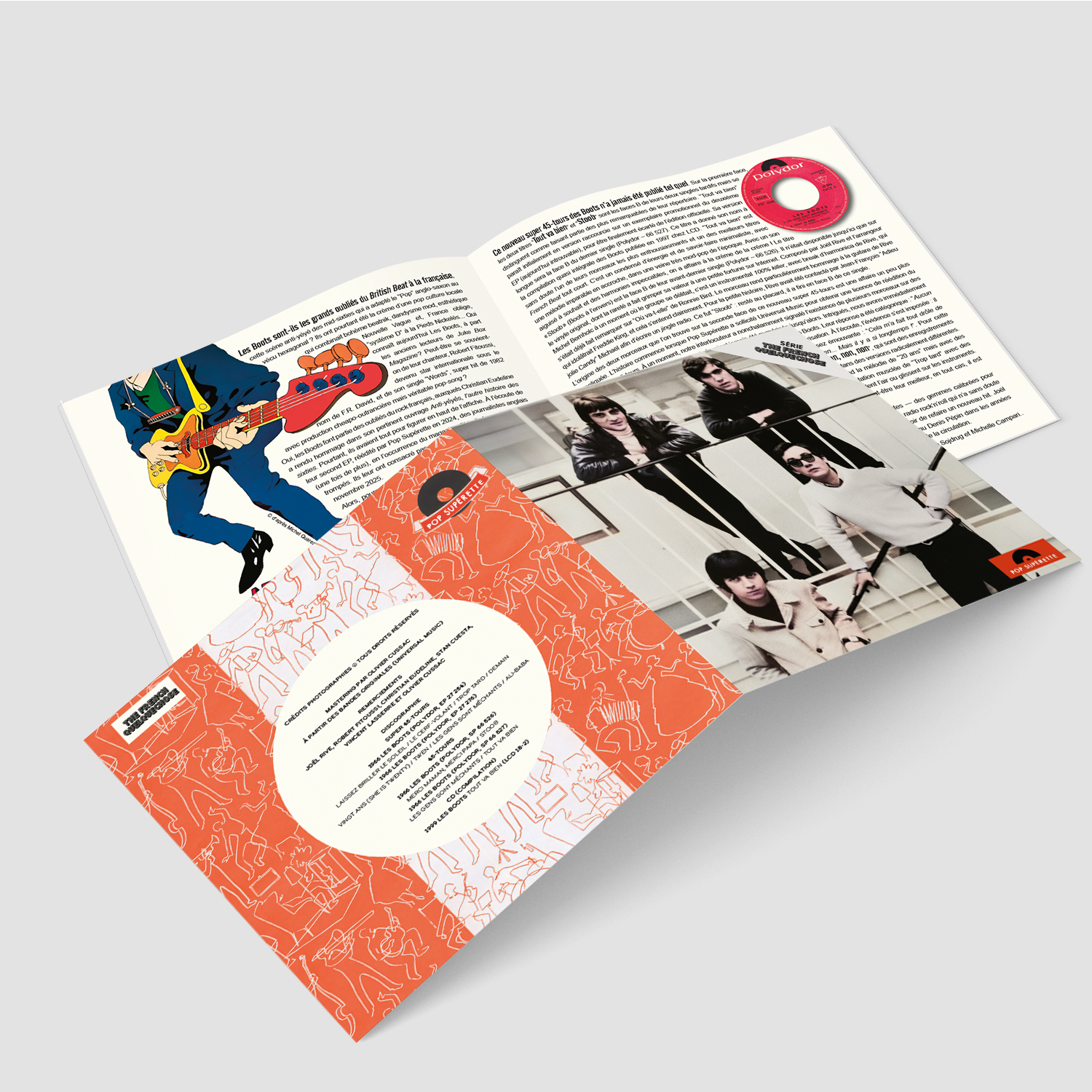 Along with Ronnie BIRD, Les PROBLÈMES and a few other bands, Les BOOTS epitomised the crème de la crème of anti-yéyé rock in France. All of them have created something unique, a genuine pop culture à la française, with its roots in the Drugstore’s minets and Chez Castel’s rockers, Nouvelle Vague-style existentialism, the beatniks of the Latin Quarter, Les Pieds Nickelés and, of course, Swingin’ London and its British Beat. In this great BOOTS EP, we hear four mod-rockers who know their jerk like the back of their hand. They’ve got a crisp, saturated sound to match, impeccable harmonies, on a par with The Hollies, no less… And above all, irresistible melodies sung in French! Accompanied by two guitarists with hard-hitting ideas, Joël Rive and Farid Khaldi (future Denis Pépin), the bassist, Robert Fitoussi (future F.R. David), turns out to be a formidable singer, with a very distinctive high-pitched phrasing, giving the impression that his voice and the band’s harmonies are splitting the air or sliding over it. An absolute must!